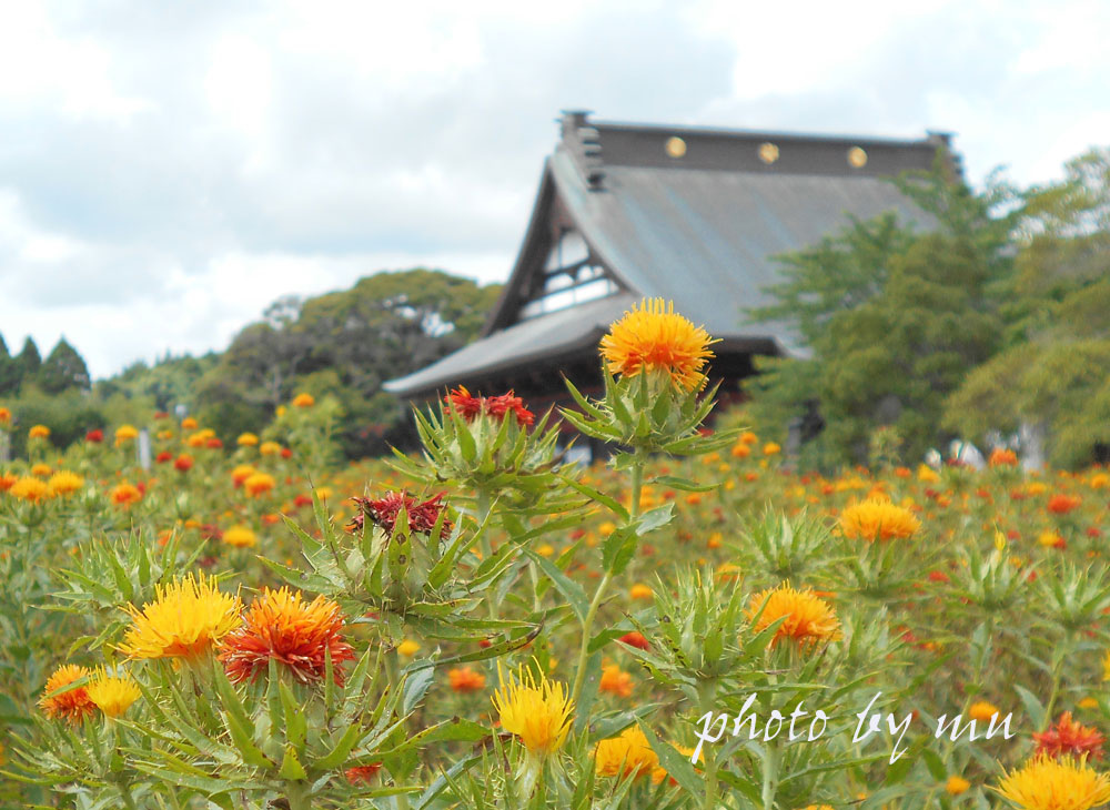 またこのお寺は紅花栽培でも有名であり、紅花フェスティバルも行われる。見応えがあり、切り花も土産に 買ってきた。